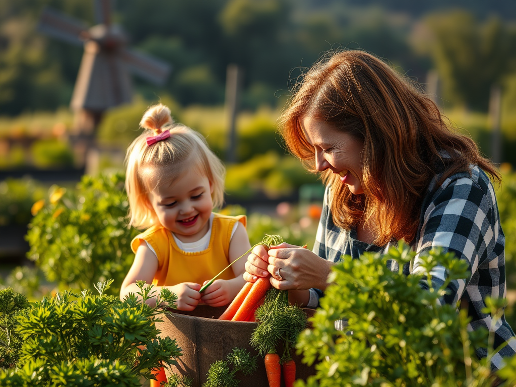 On weekends, Sarah comes by to help in the garden. Sanne often stays behind with Julia until dinner. Sanne loves spending time in Julia’s garden. She especially enjoys cleaning and brushing off the carrots. Sometimes, a little dirt ends up on her dress, but that doesn’t matter. Sometimes a little dirt ends up on Sanne’s lips, and she sputters and splashes like a broken-outboard motor. They both laugh heartily every time this happens.